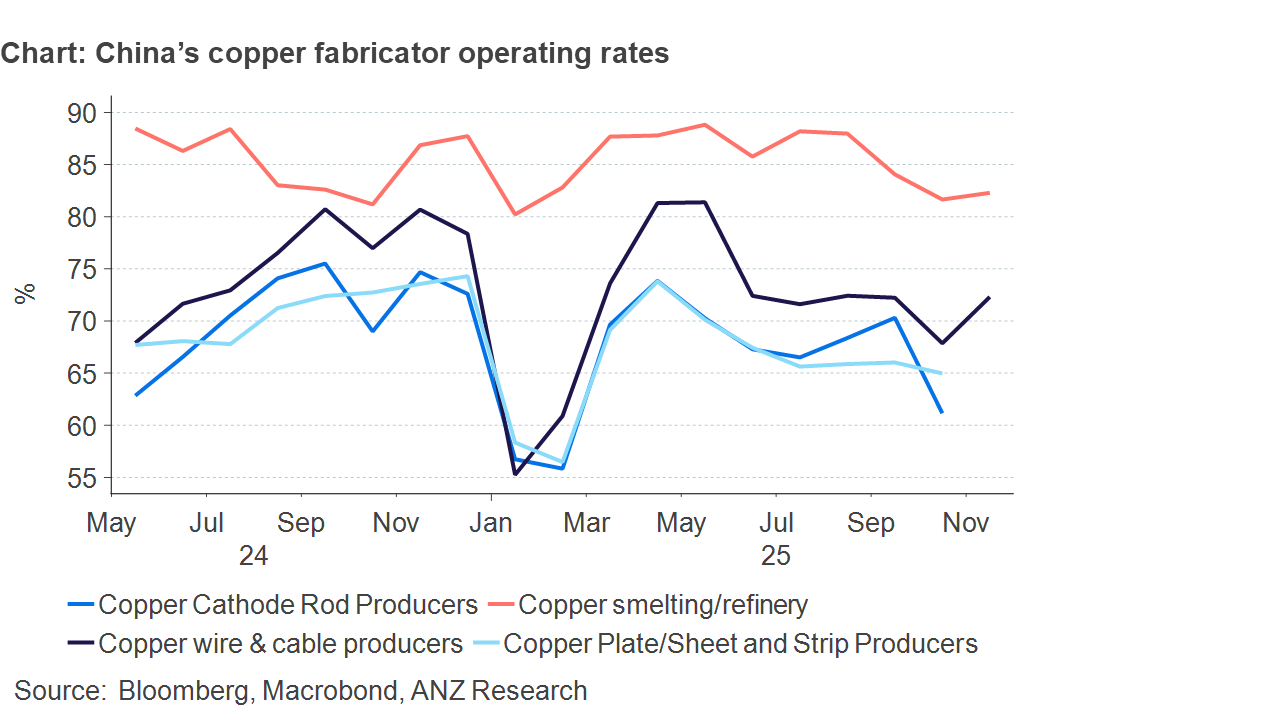 China’s investment in its power grid and clean-energy technologies is bolstering demand for copper. However, there are some signs of demand weakening in the near term. Industrial and manufacturing activity fell sharply in China in October. This is being reflected in the copper market, with operating rates at Chinese fabricators falling in recent weeks. Copper cathode rod producers are now operating at only 61% capacity, compared with 74% in April.