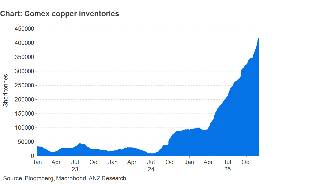 Copper inventories in Comex warehouses have risen to a record high 402,876t. This is up 330% over the past year and is now equal to 25% of total US copper demand. This is despite Trump announcing in July that refined copper metal would be exempt from 50% tariffs. A proclamation published by the White House stated that the Department of Commerce delay the imposition of imports tariffs on refined metal, with the rate set at 15% starting 2027, rising to 30% in 2028. However, Trump also directed the Secretary of Commerce to provide an update on US copper markets by the end of June 2026, so that the president could determine whether the phased universal import duty on refined copper would be warranted. This has triggered concerns that the 50% tariff will come in early than planned, prompting the continued surge of metal in the US.
