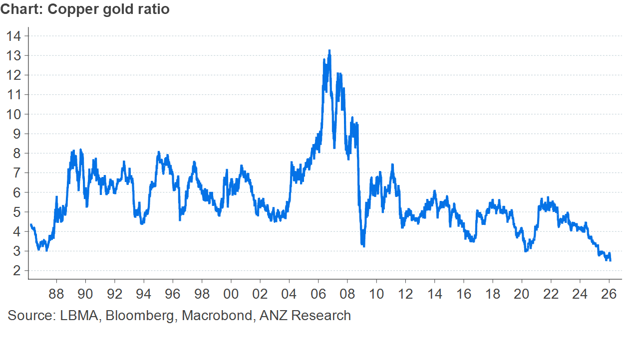 The copper/gold ratio has long been used as a key economic indicator comparing industrial demand (copper) to safe-haven sentiment (gold). A rising ratio signals economic expansion and "risk-on" sentiment, while a falling ratio indicates economic slowdown, recession fears, or "risk-off" market behavior.