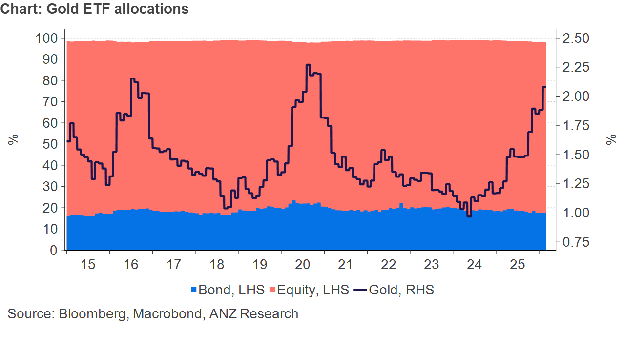Despite the strong investor demand in recent months, gold is still relatively under-owned against traditional assets. Gold ETF assets under management make up only 2% of a portfolio made up of bonds, equities and precious metals. That provides some potential upside to investor demand, despite the strong price gains achieved recently.