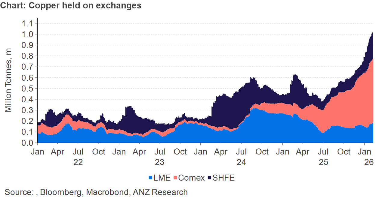 Copper trade flows have been upended by Trump’s tariffs. Metal held on exchanges has subsequently risen as consumers look to secure supplies. Copper held in US Comex warehouses now represents more than 58% of global exchange inventory.